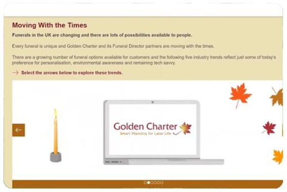 Learning Experience Manager Tracey McDonald and her team worked with Golden Charter to develop three short digital modules, each no more than 10 minutes long.Module 1 used beautiful animation and illustrations, aligned to Golden Charter’s brand, to introduce the business and challenge the perception that funerals are a difficult topic.