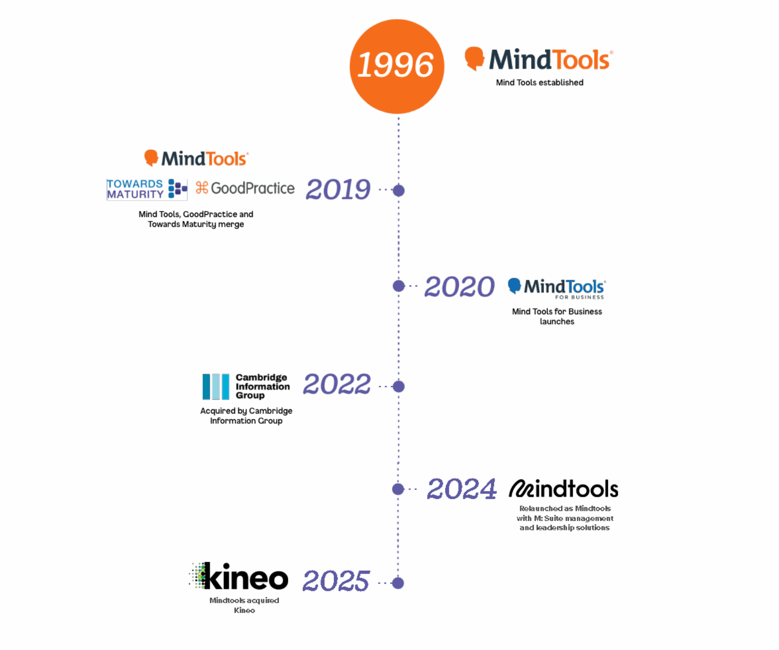 Today, Mindtools brings together the strengths of four respected organizations – Mindtools, Towards Maturity, GoodPractice, and, most recently, Kineo. Together, we draw on the content mastery of Mindtools, the research and thought leadership of Towards Maturity, the skills development know-how of GoodPractice, and – with our acquisition of Kineo in May 2025 – we have further strengthened our ability to deliver complete workplace learning solutions comprising content, consultancy, courses, technology, managed services, insights, analytics and thought leadership for customers across sectors and around the world.